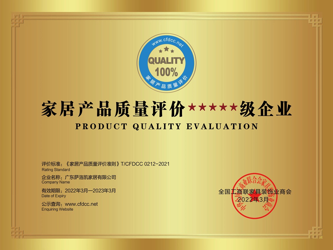 家居產品質量評價5星級企業(yè)有效期至2024年